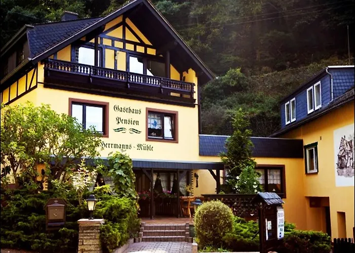 Das 3-Sterne-Hotel Herrmannsmuhle Sankt Goarshausen bietet 10 Zimmer ca. 3 km von der Burg Rheinfels entfernt. Der Gasthof verfügt auch über Parkplätze.
